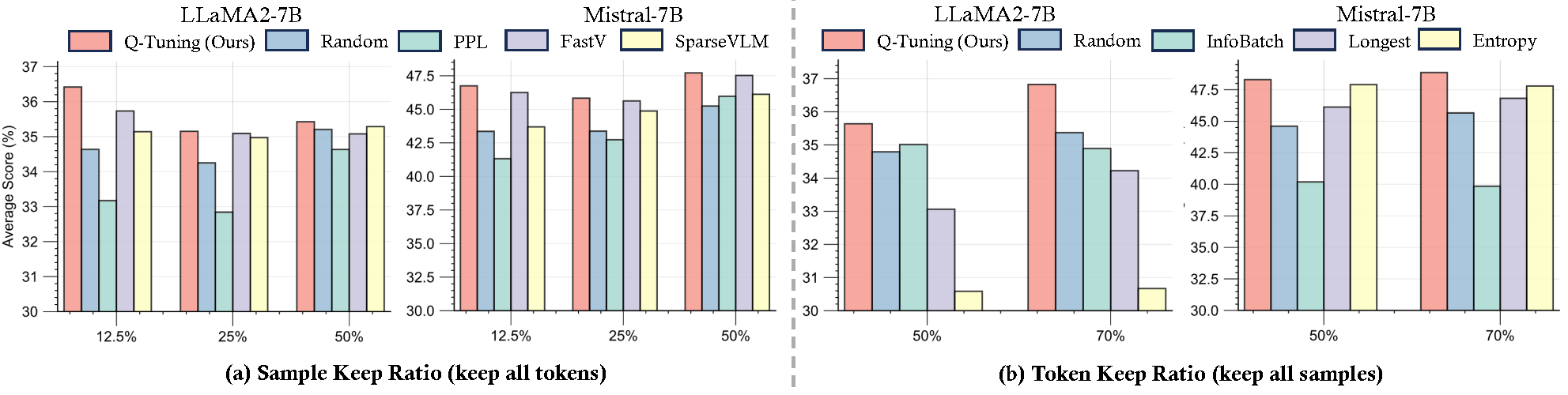 Q-Tuning. We propose Q-Tuning, the first integrated, diagnosis-driven algorithm for dynamic pruning that coordinates sample and token decisions based on EU Plane insights.